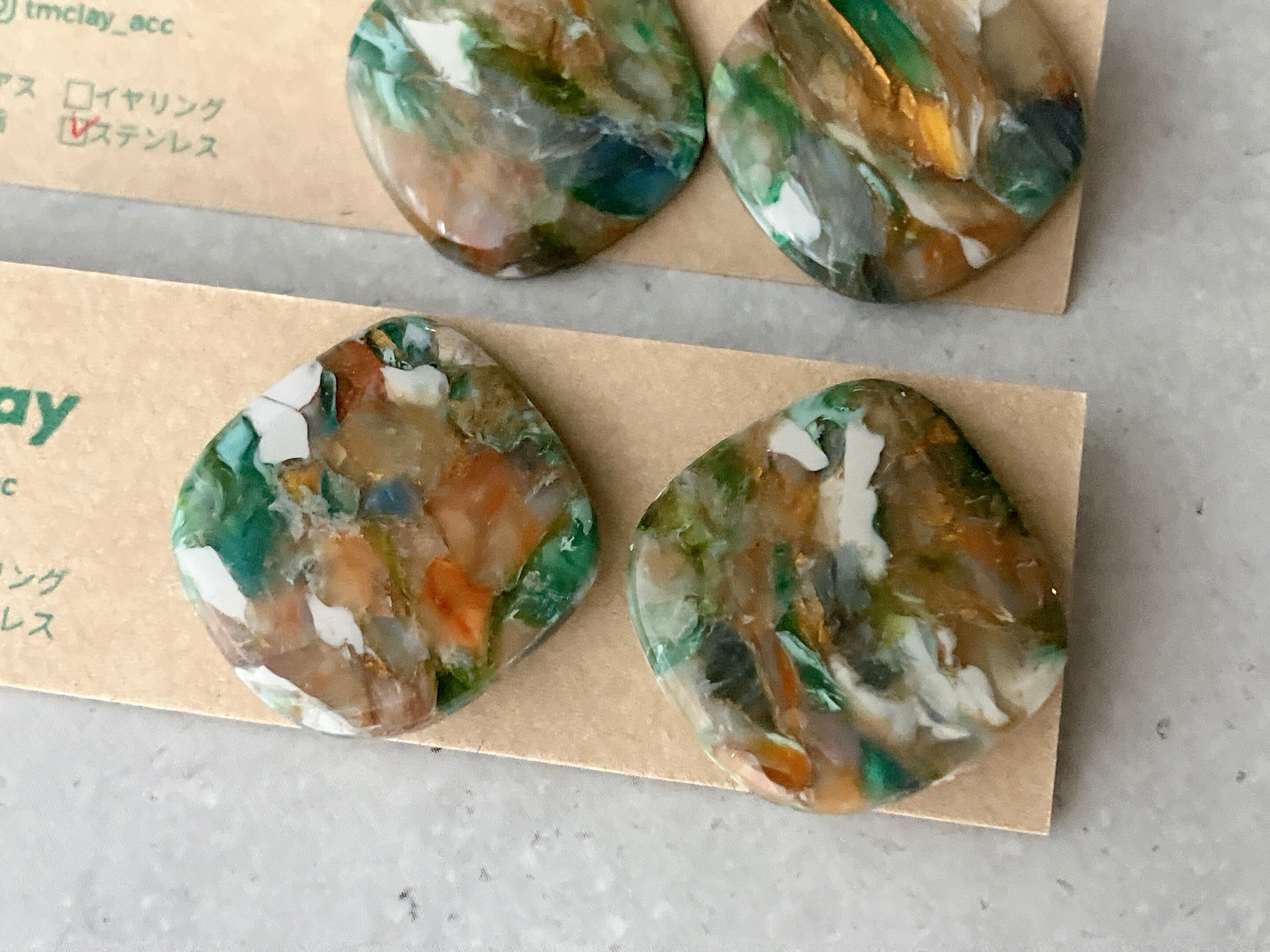 接着剤の上からレジンを使用しているため、レジンアレルギーの方はご注意ください。(金具にパーツがぶら下がってるタイプには接着剤、レジン共に使用しておりません。)
