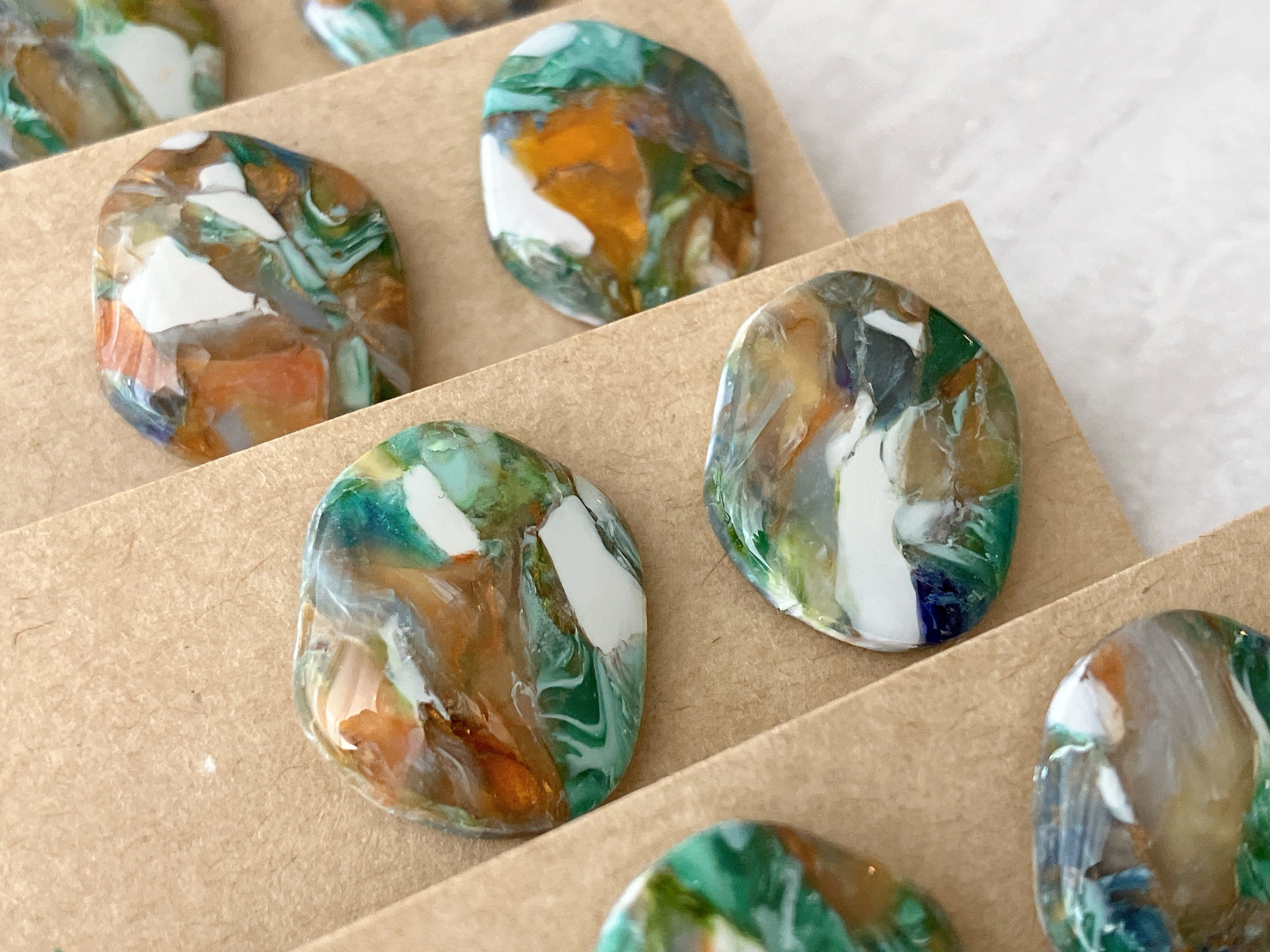 粘土の上にレジンコーティングをしているので奥行き感がありつつ、ツルっと質感